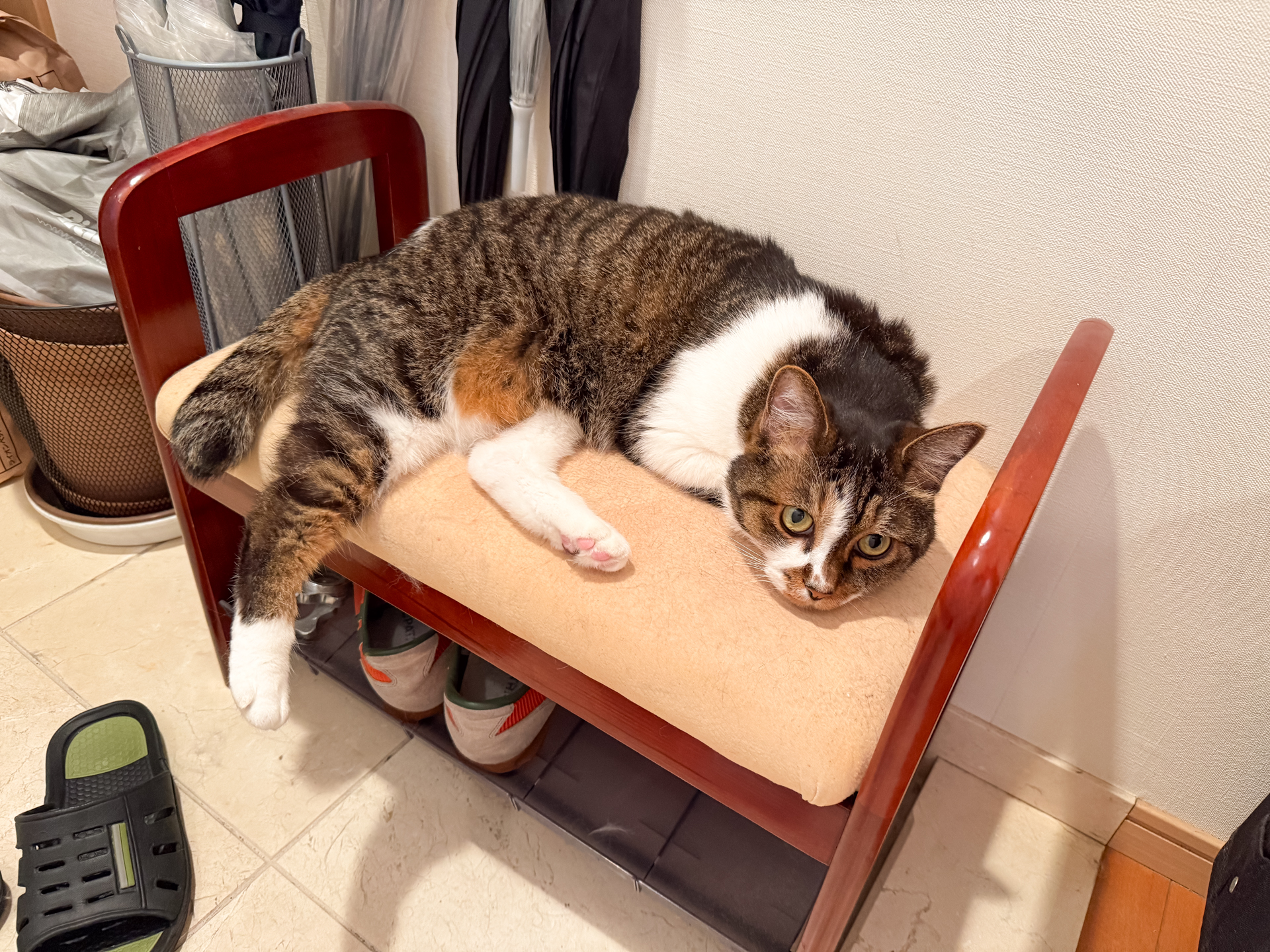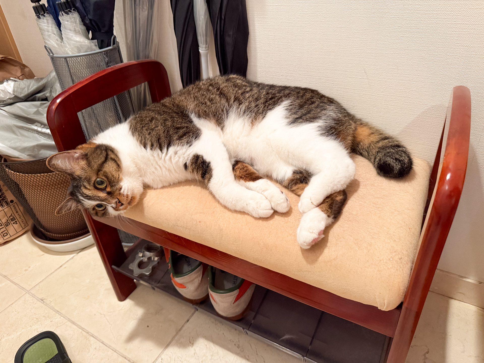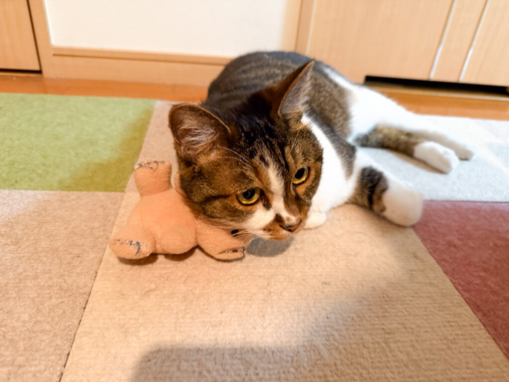 10.晩飯を外で食べて帰宅すると玄関でお出迎え。子熊ちゃんと一緒に待っててくれたんやなぁ😊