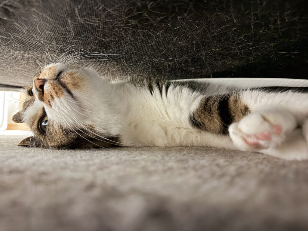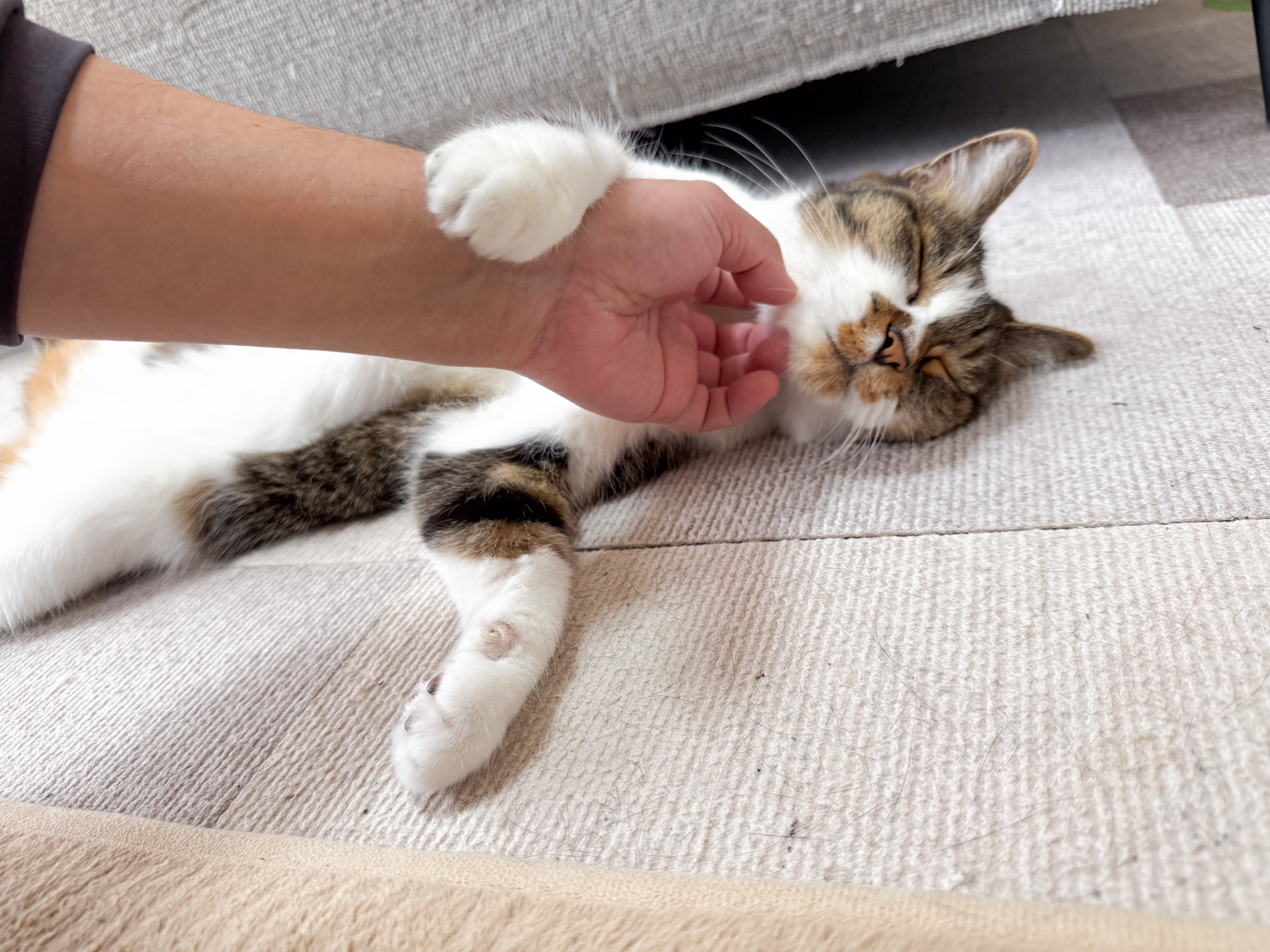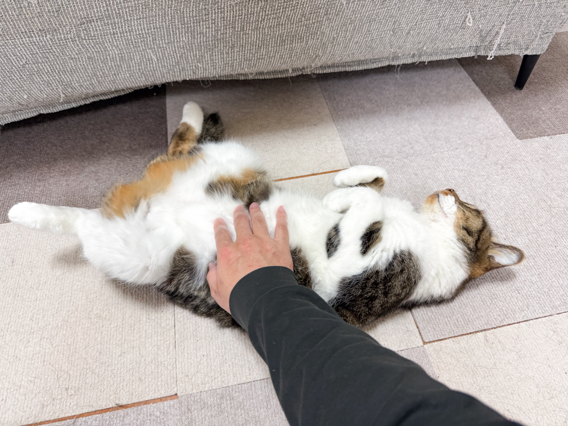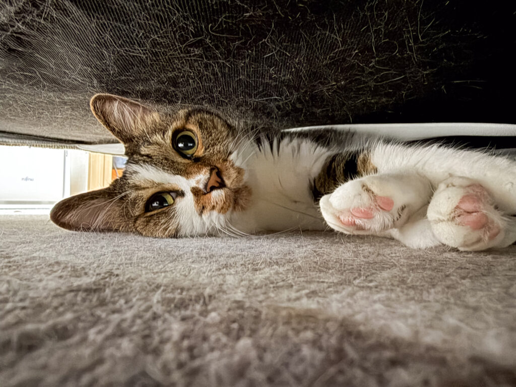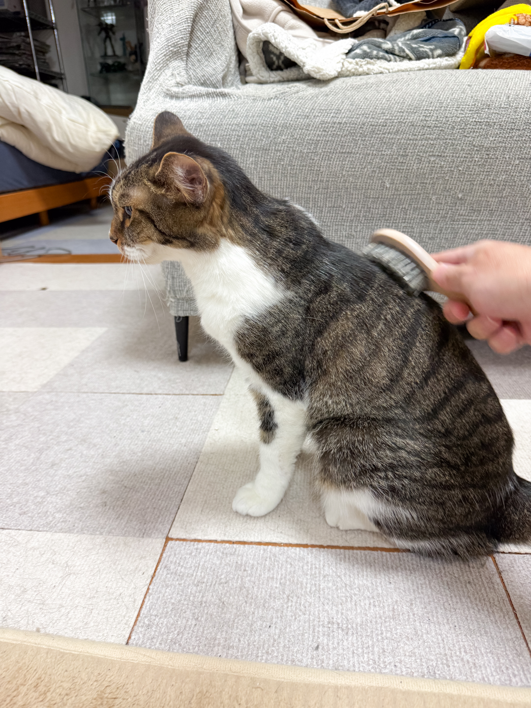 1.ソファー下から出てきてブラッシングしようや