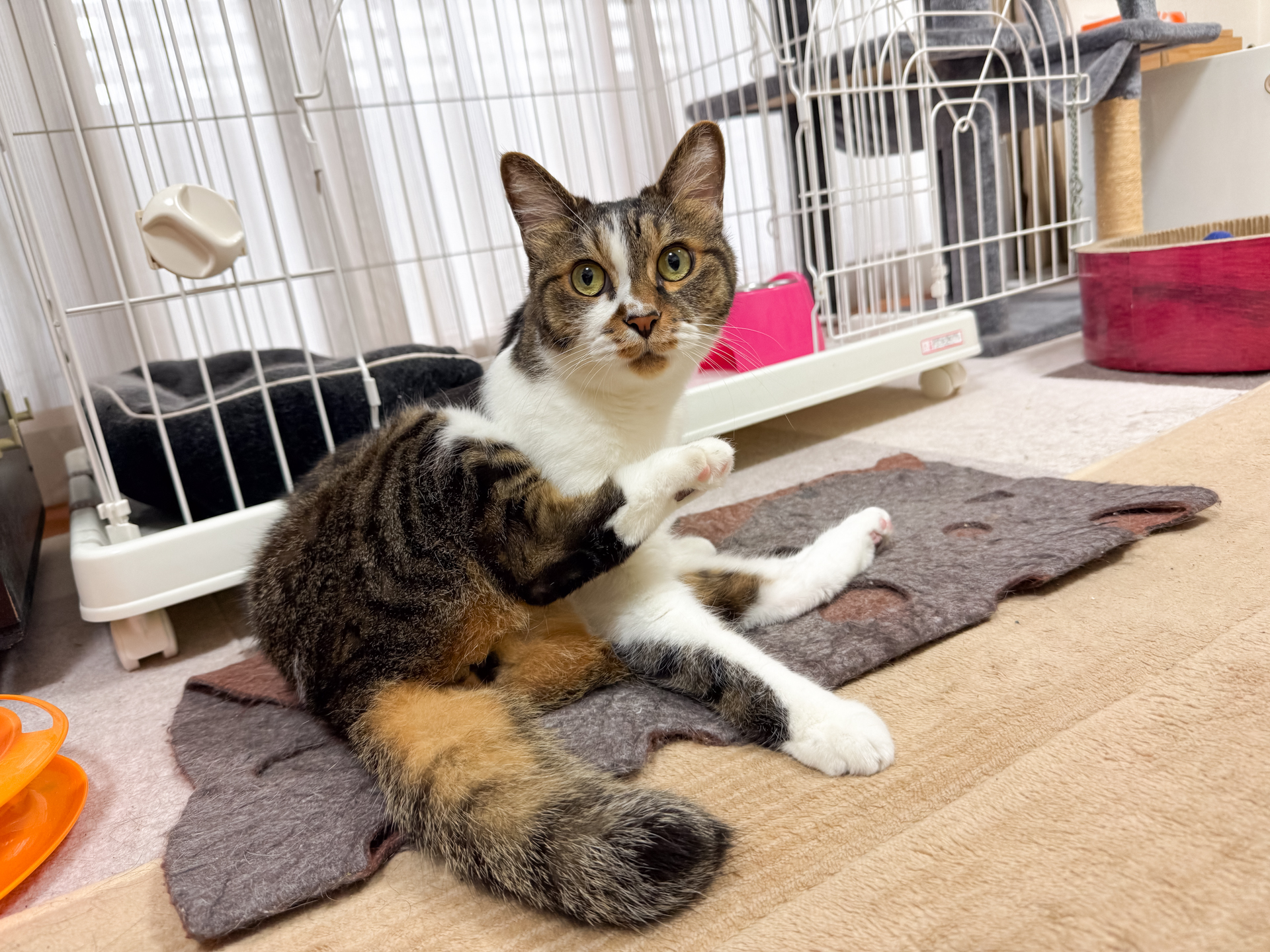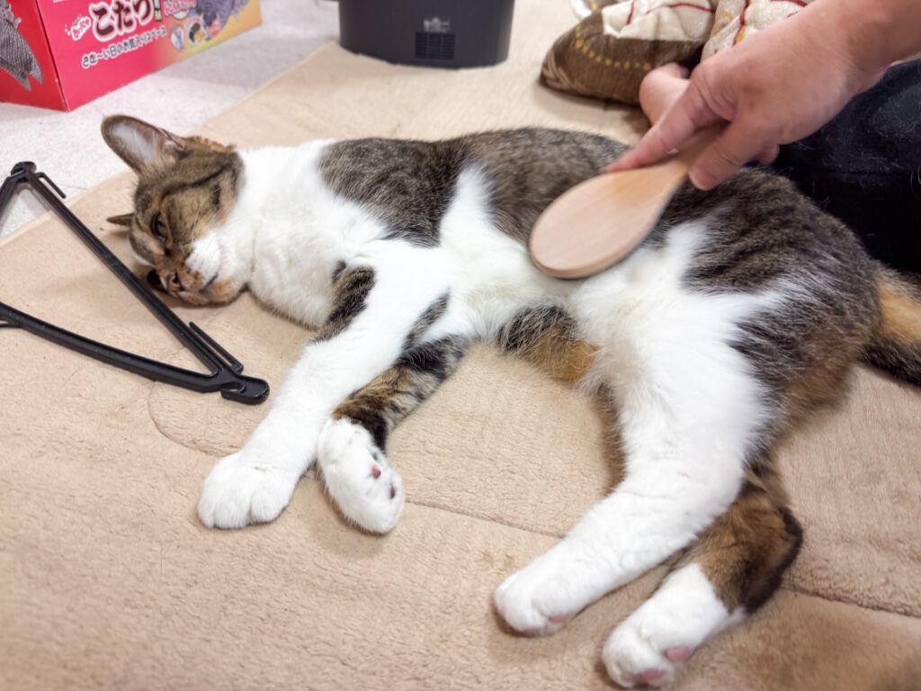 3.珍しくあぐらの上でのブラッシングw